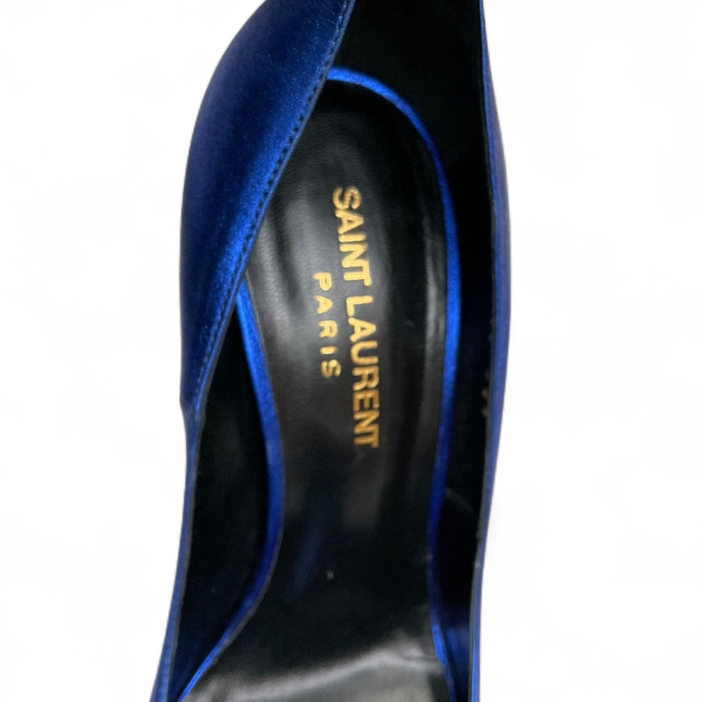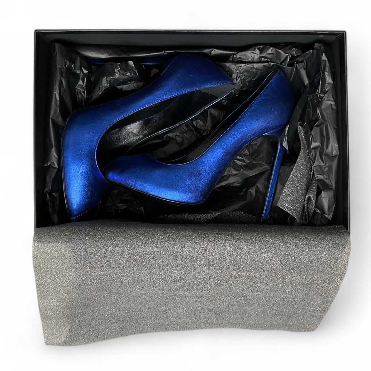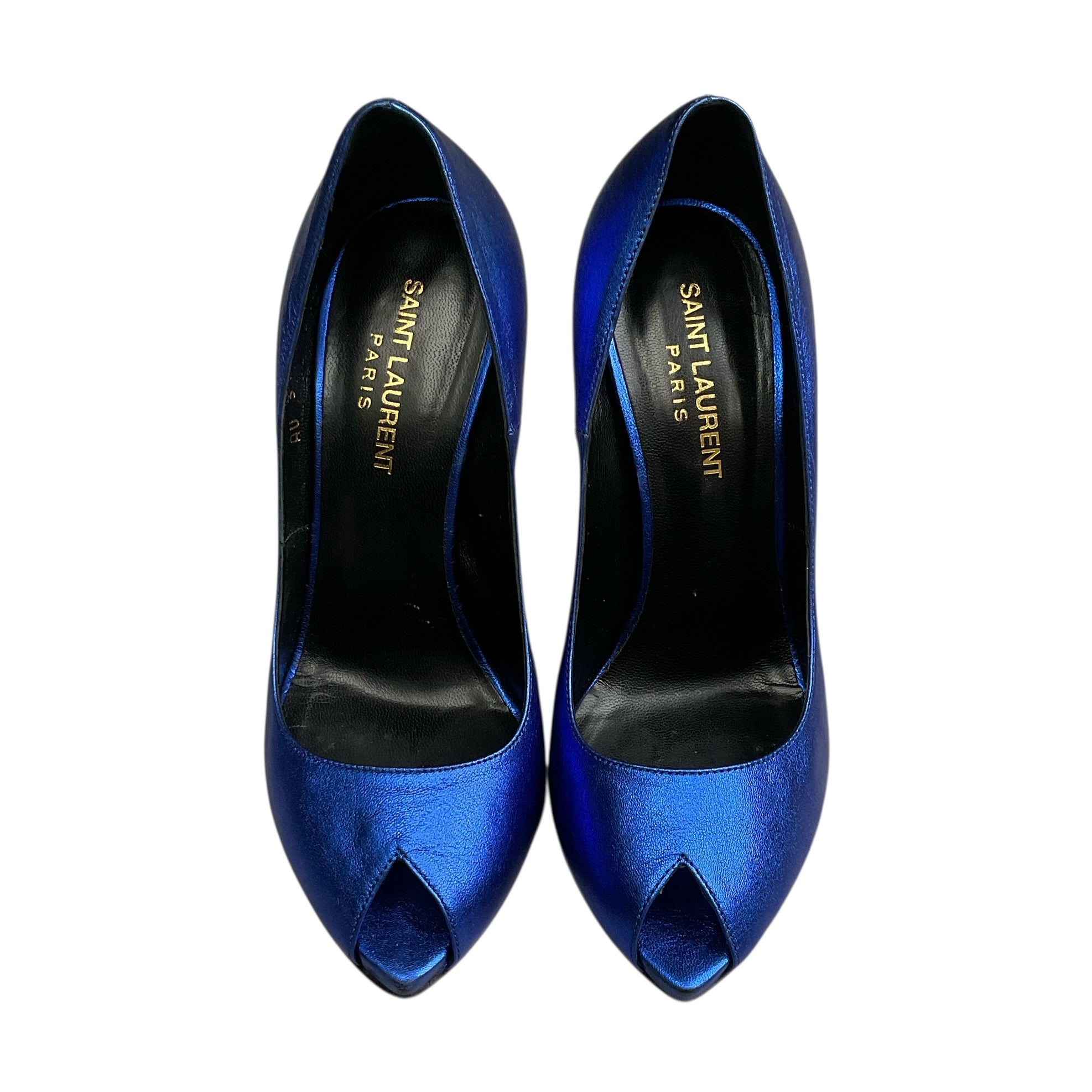 Saint Laurent pumps made of metallic blue leather with peep toes