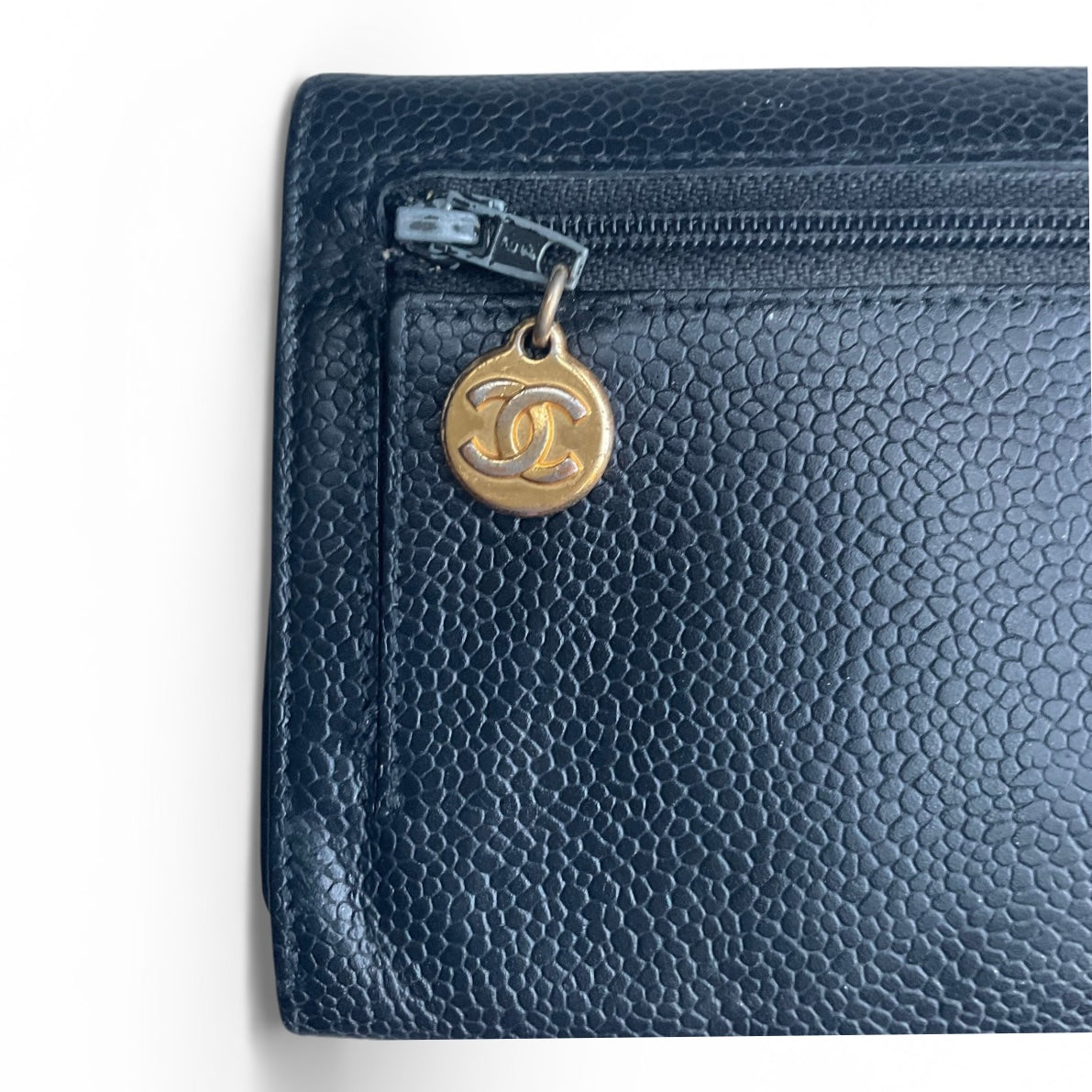 Vintage Chanel Caviar Leather Wallet made of grained caviar leather in black