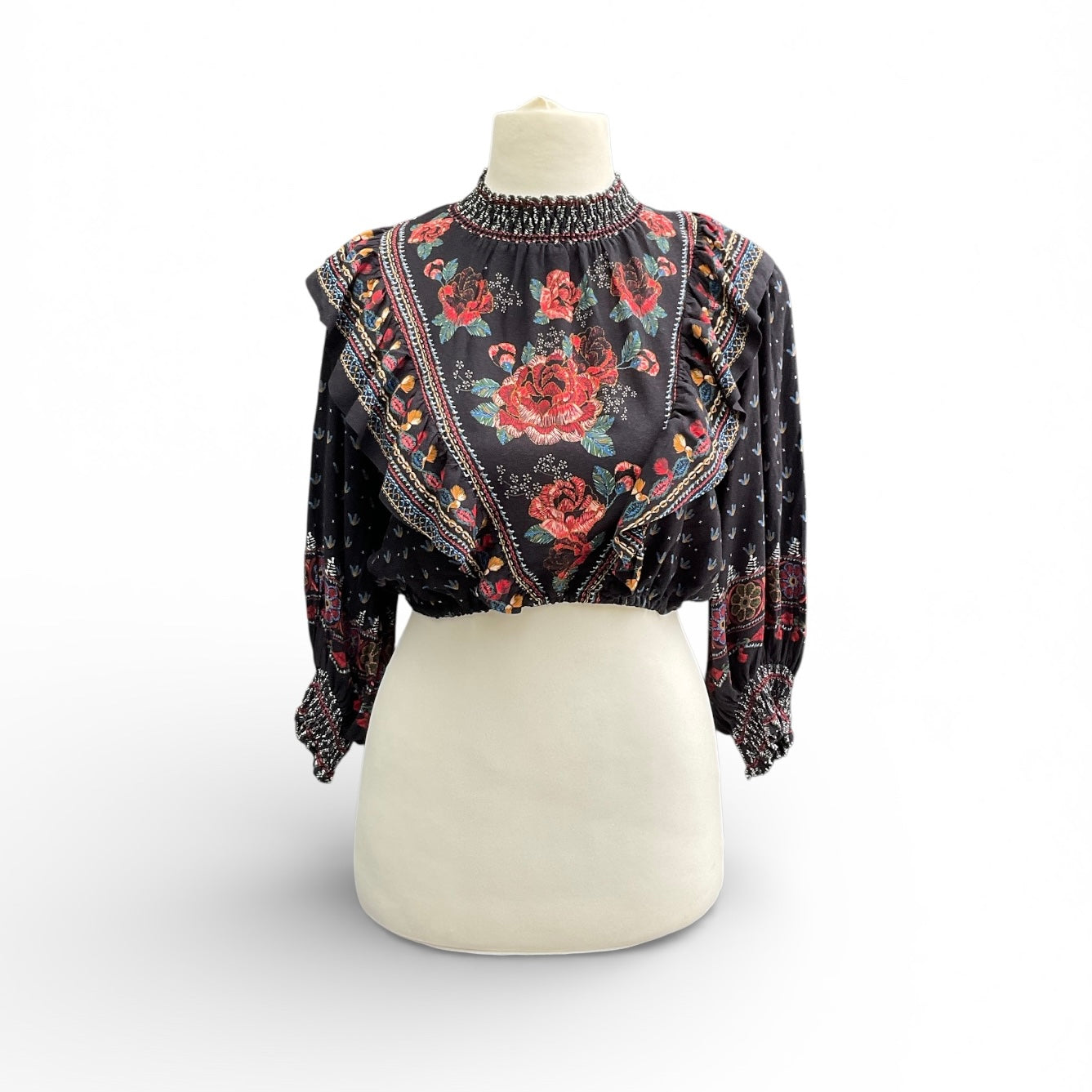 Farm Rio cropped floral print viscose top