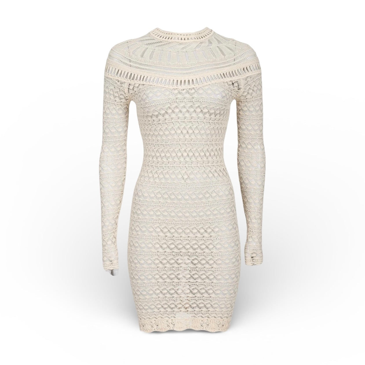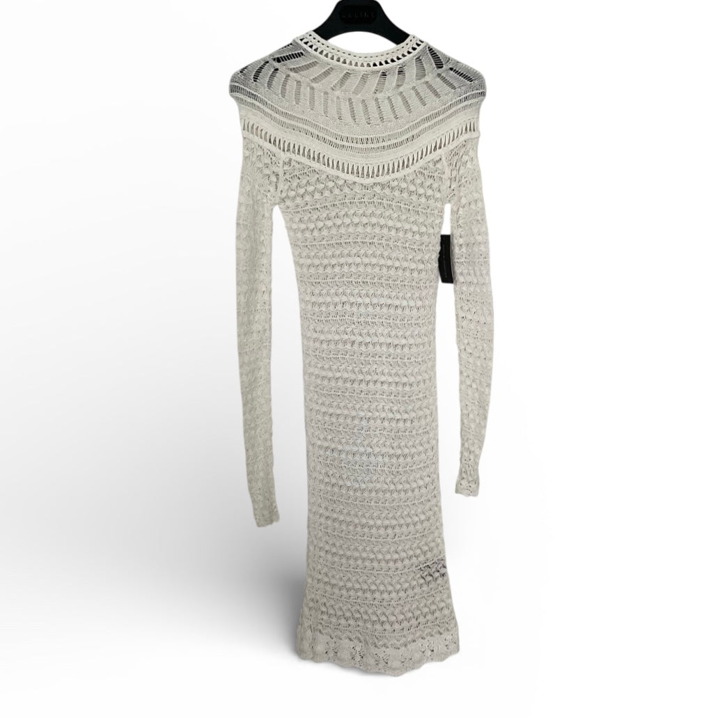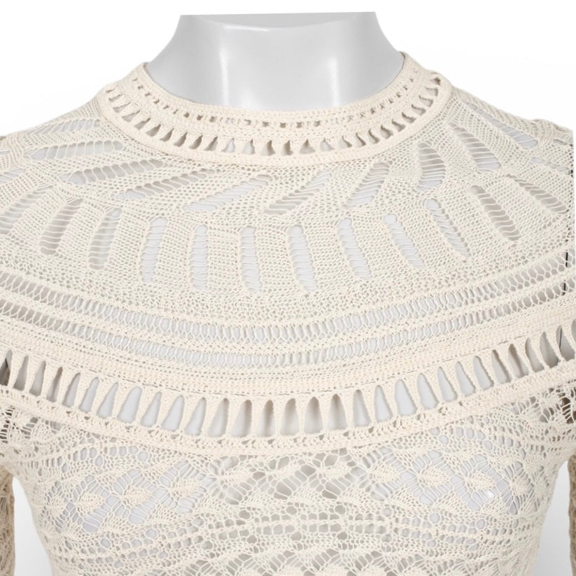 Knot crochet long sleeve knee length dress