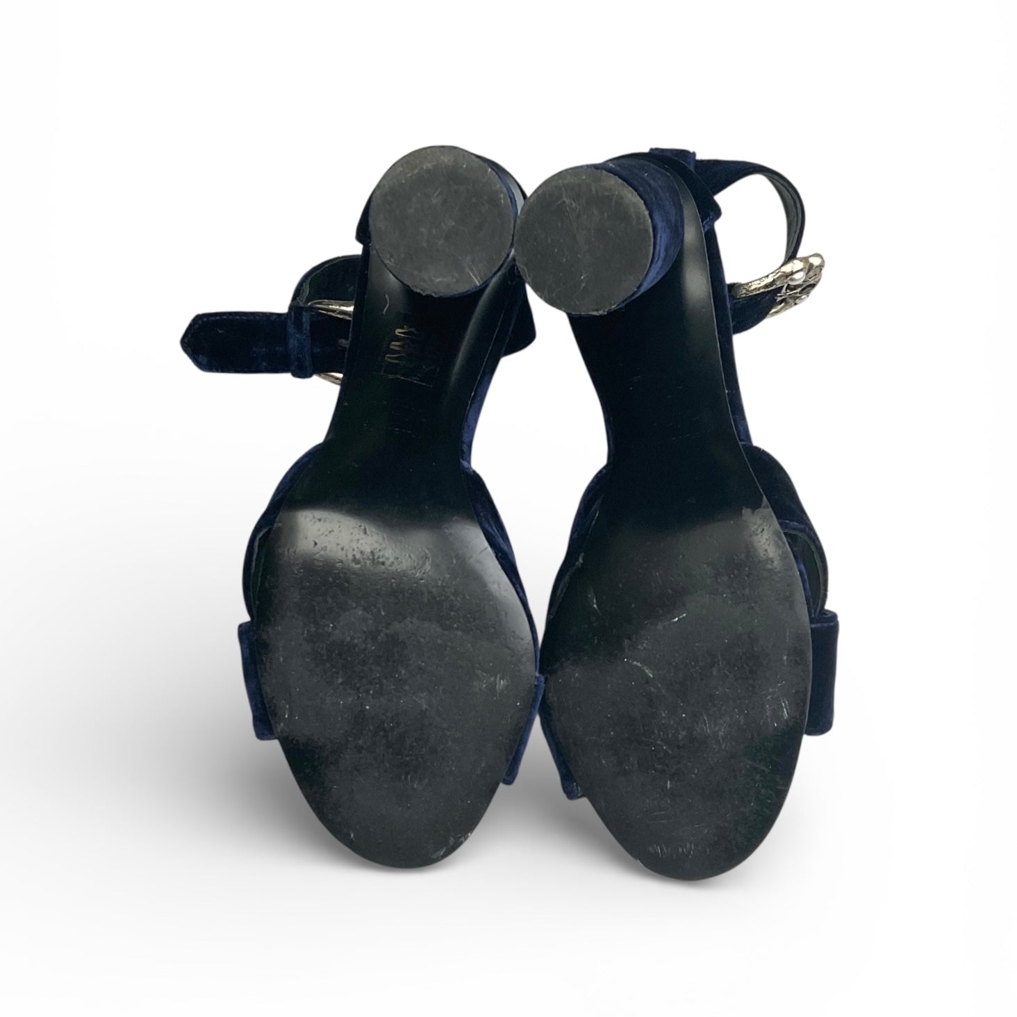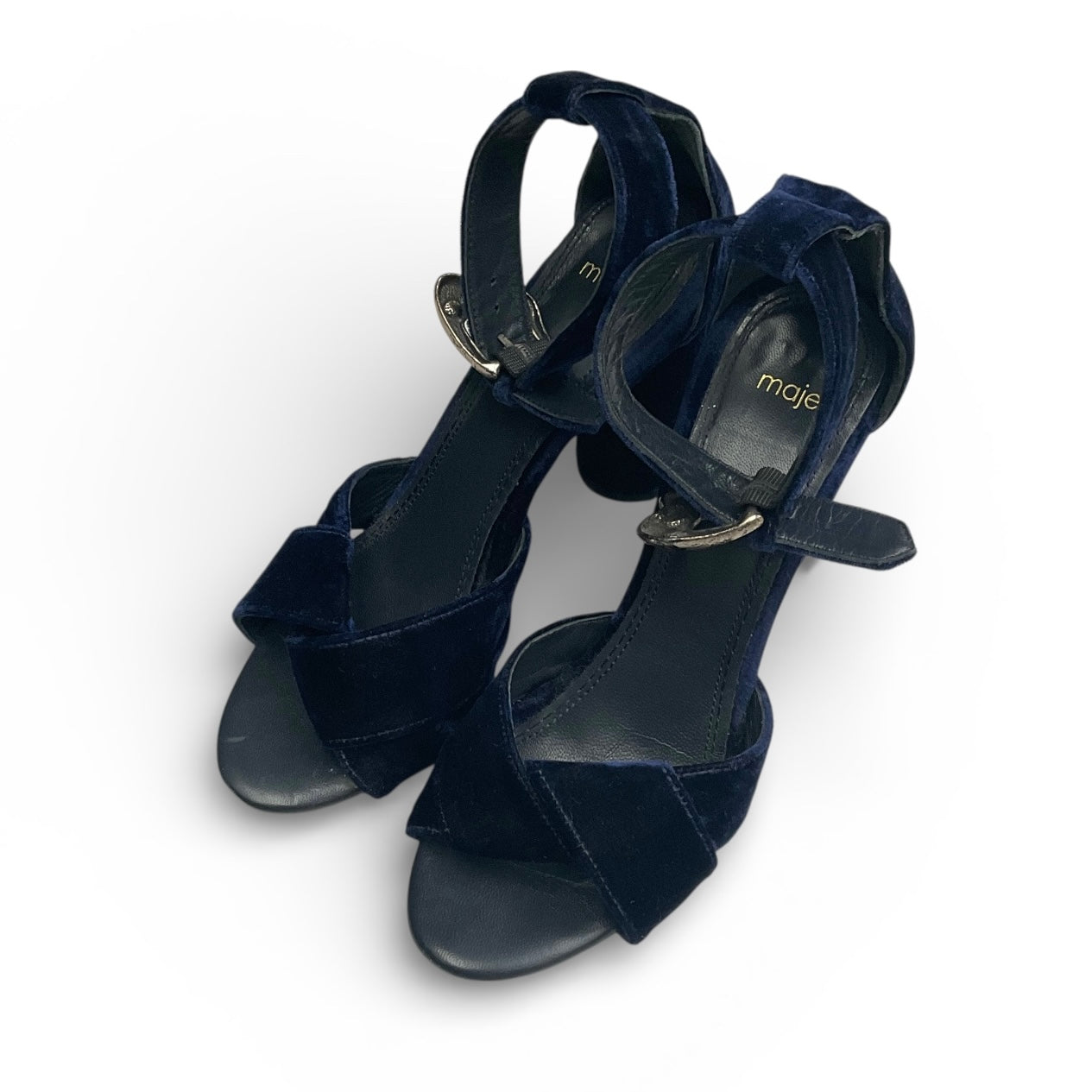 Maje midnight blue velvet sandals with some jewels detail on the buckle