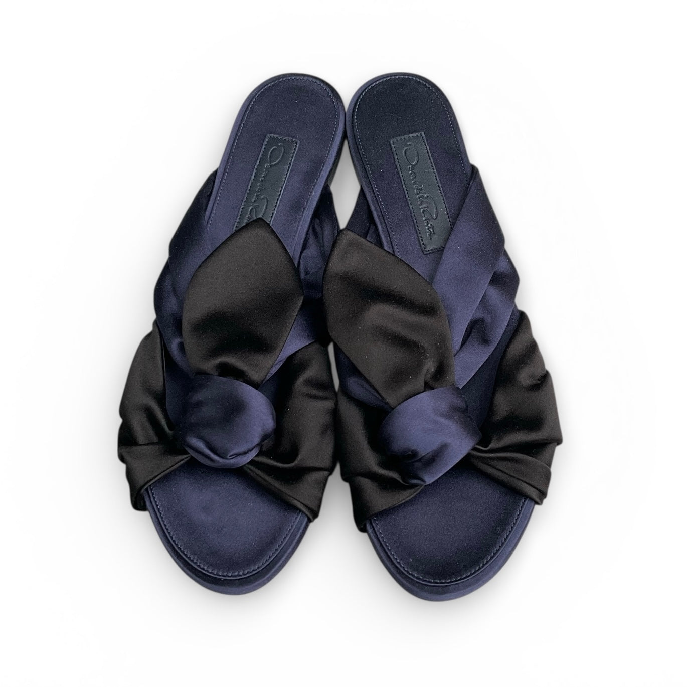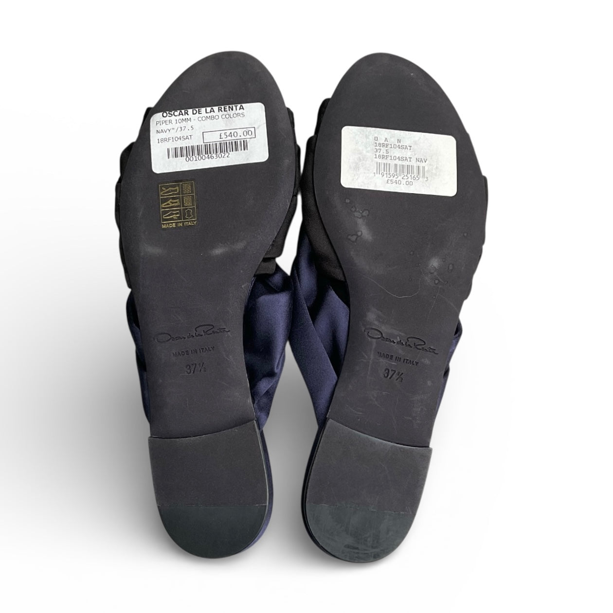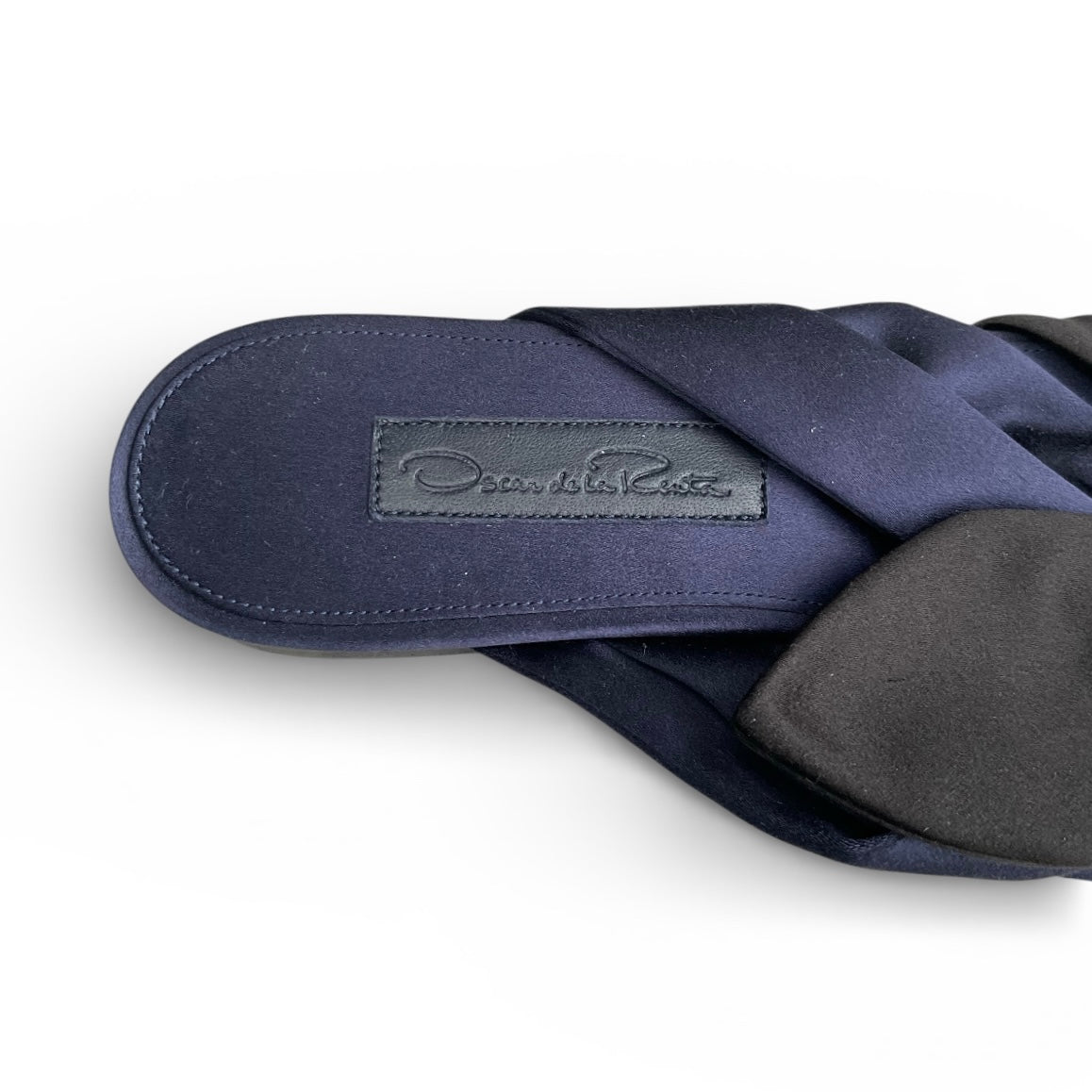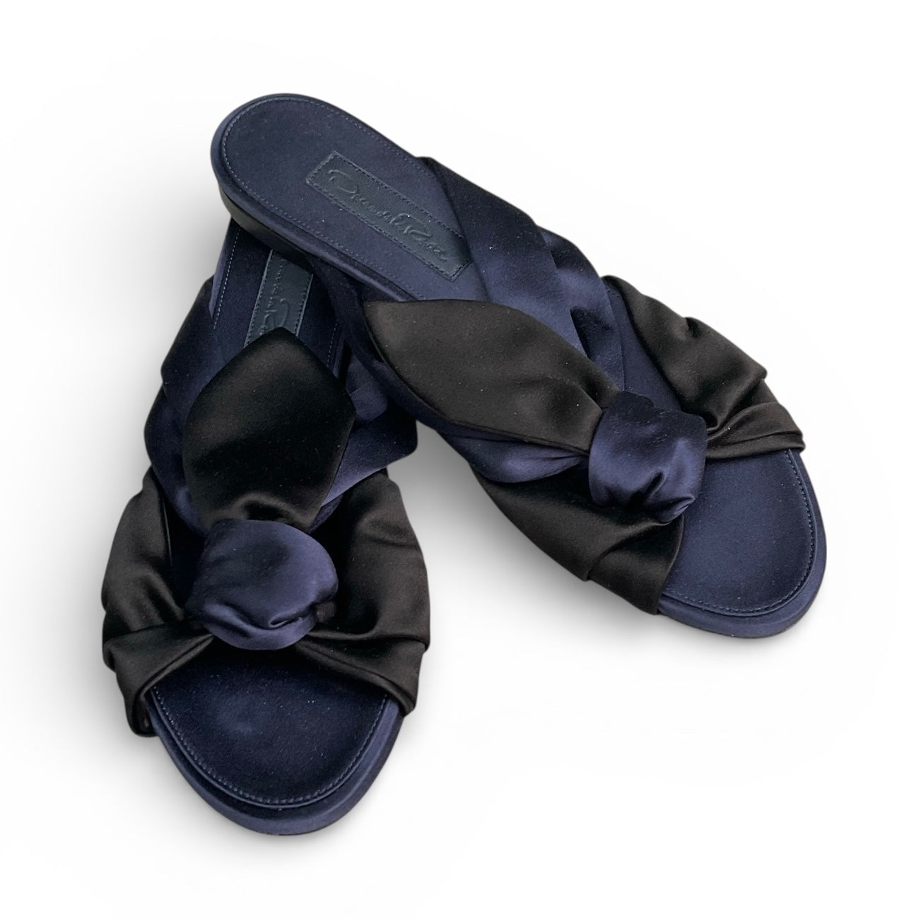 Oscar de la Renta Navy and Black Satin Piper Slip-on Sandals