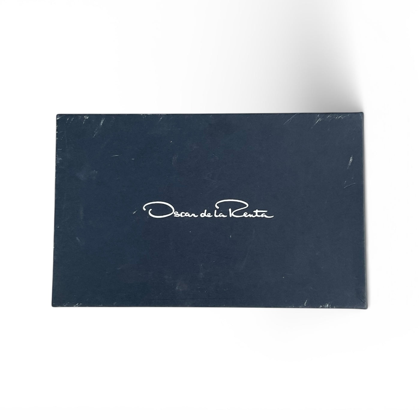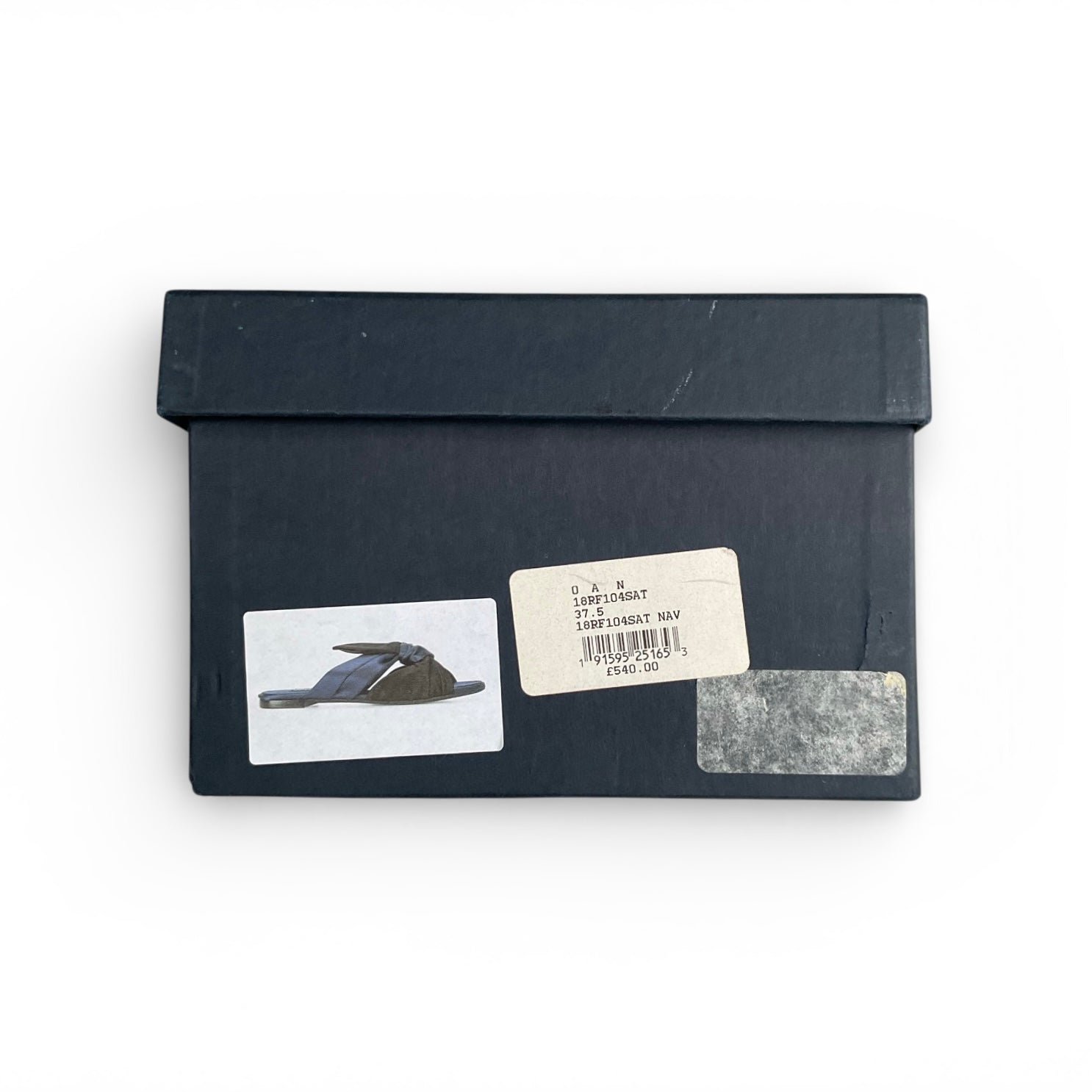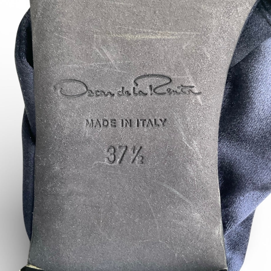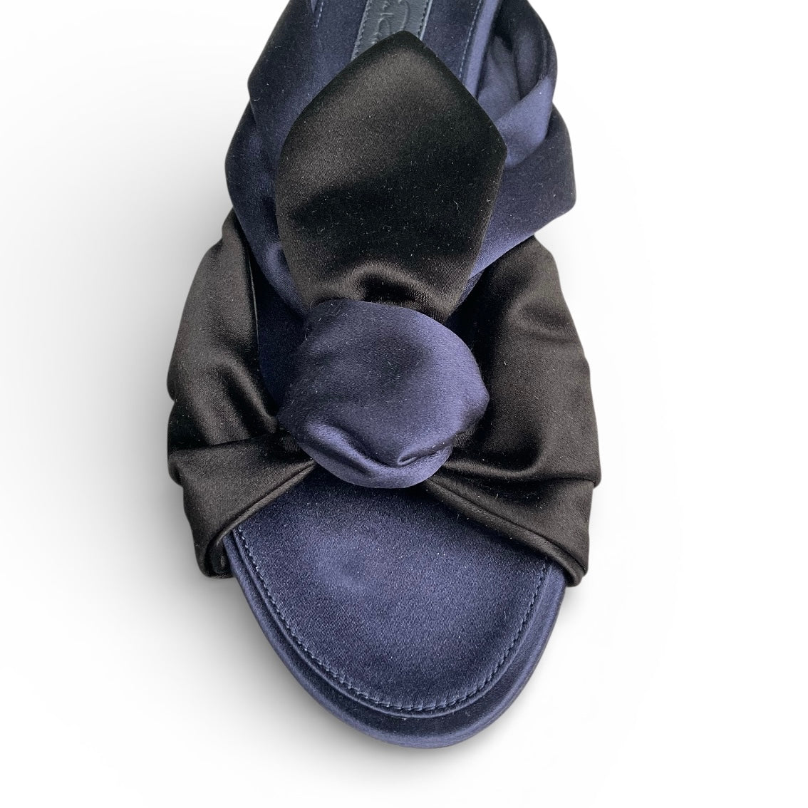 Oscar de la Renta Navy and Black Satin Piper Slip-on Sandals