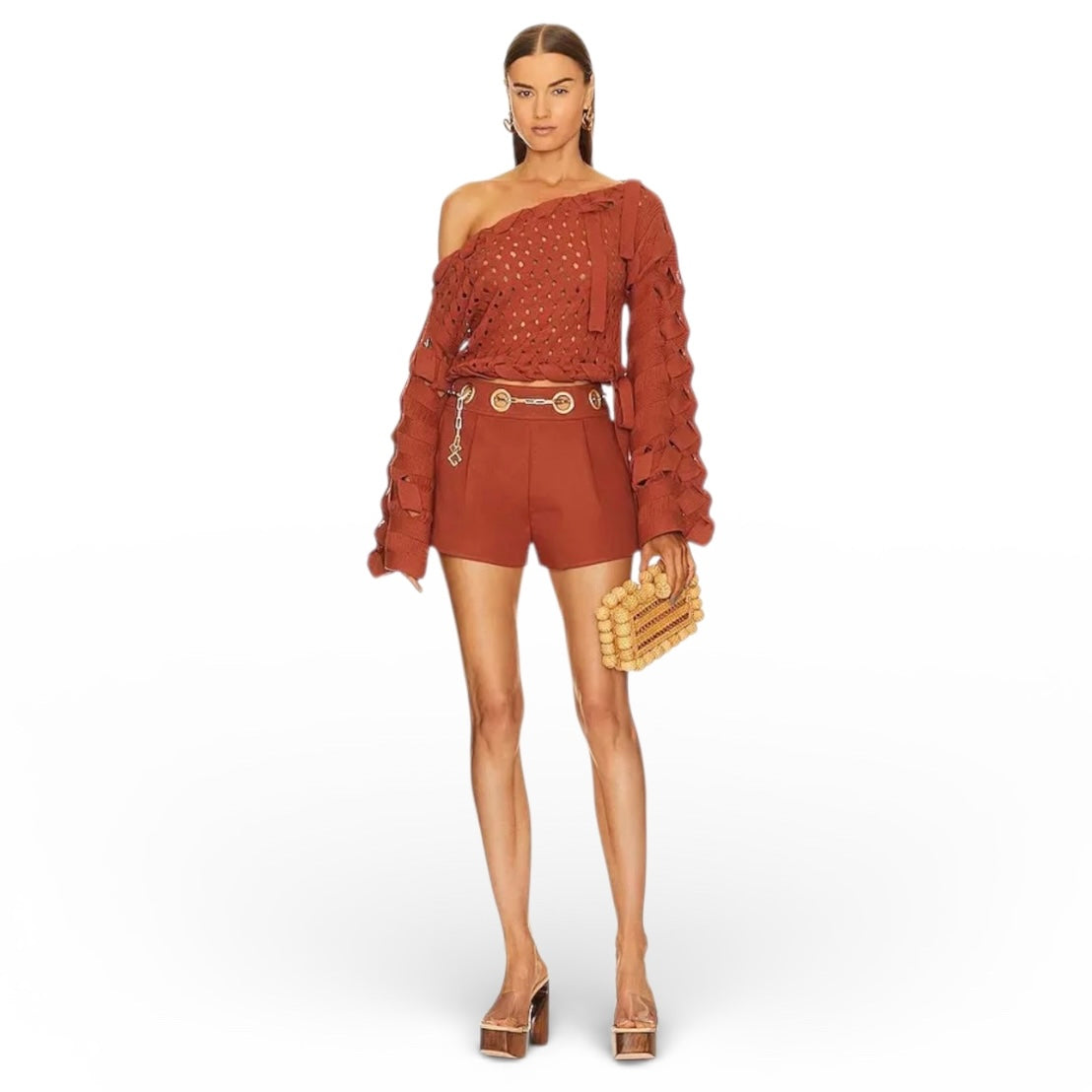 Cult Gaia Lucia Short in Rust Colour with detachable gold-tone chain belt