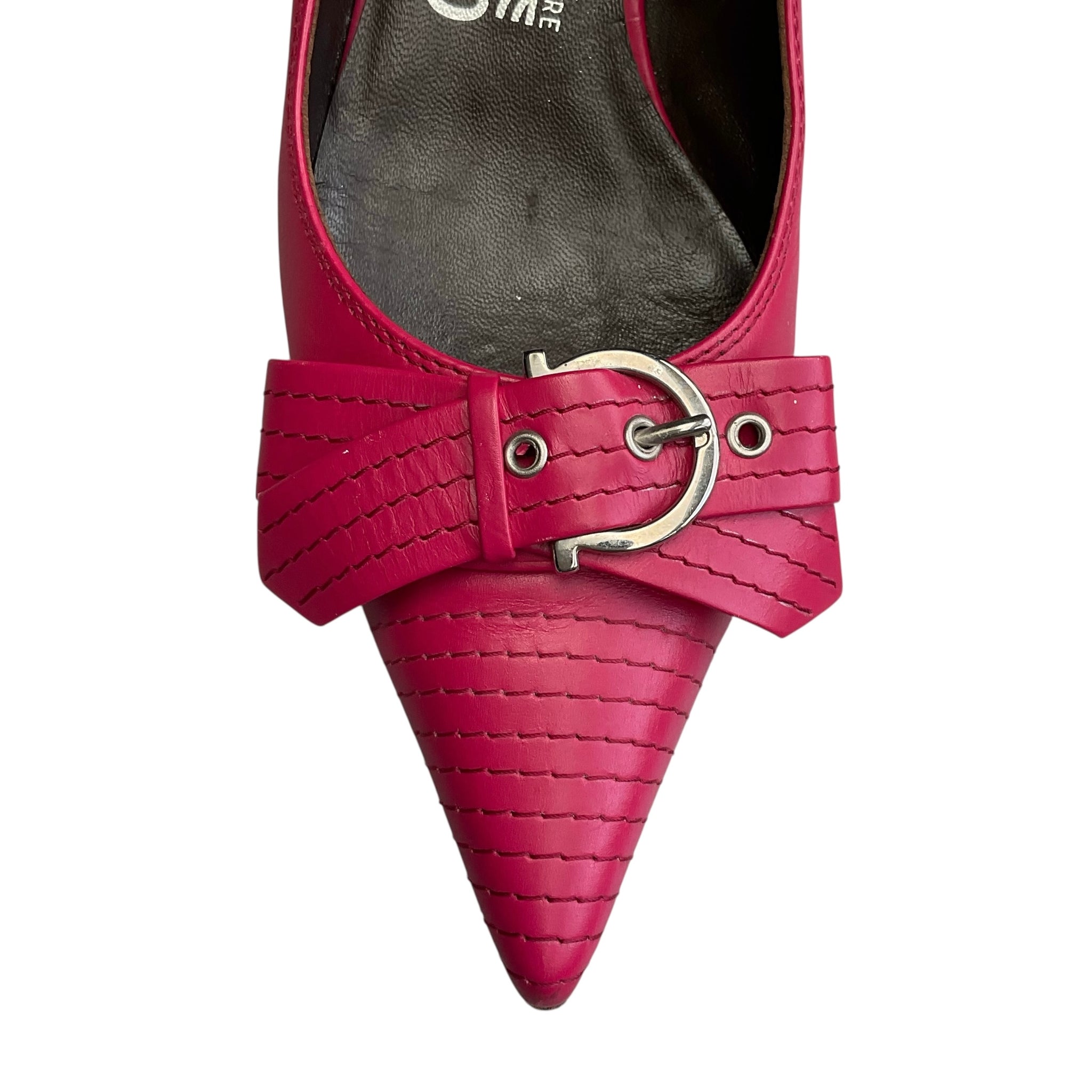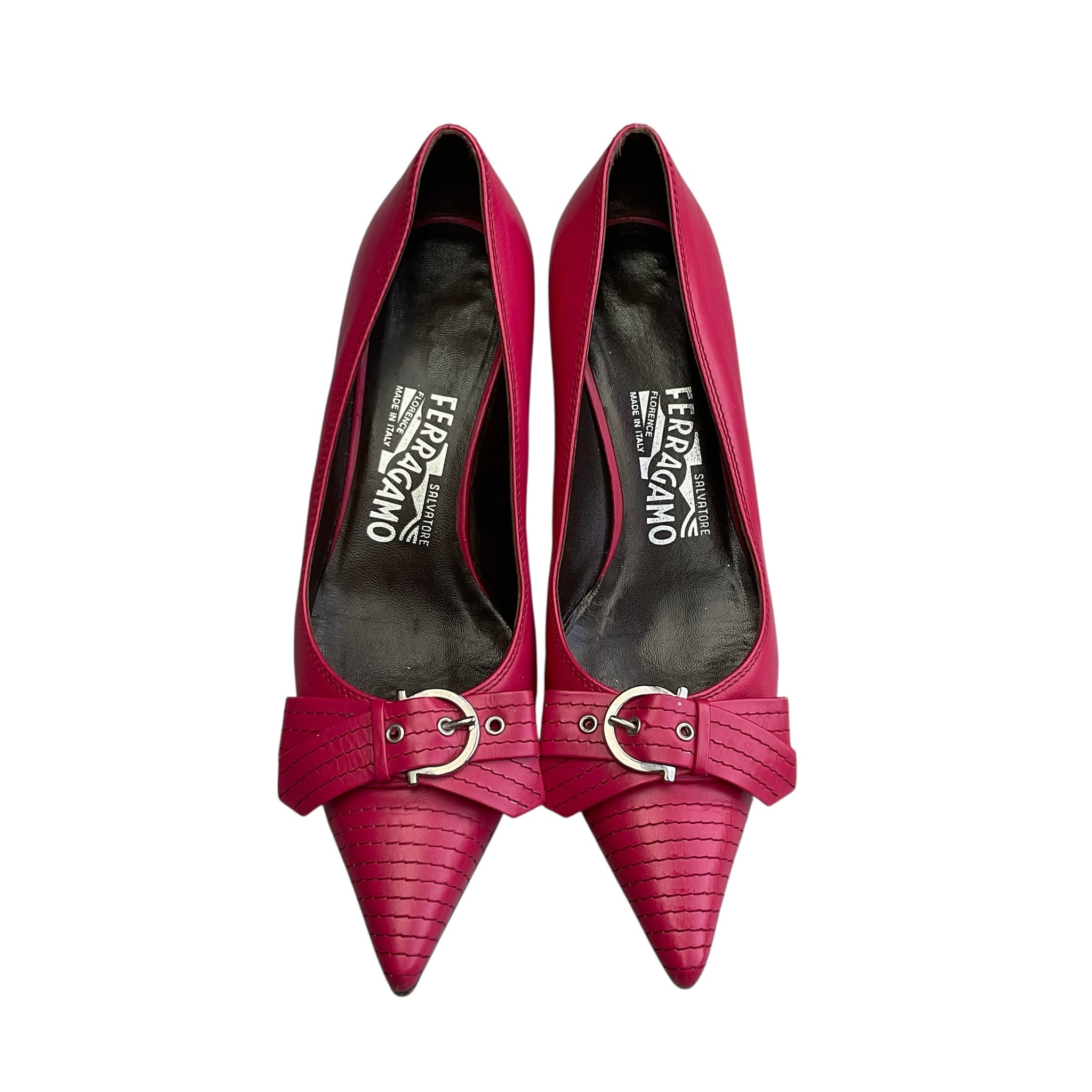 Salvatore Ferragamo Vintage deep pink kitten heel shoes with buckle bow on front