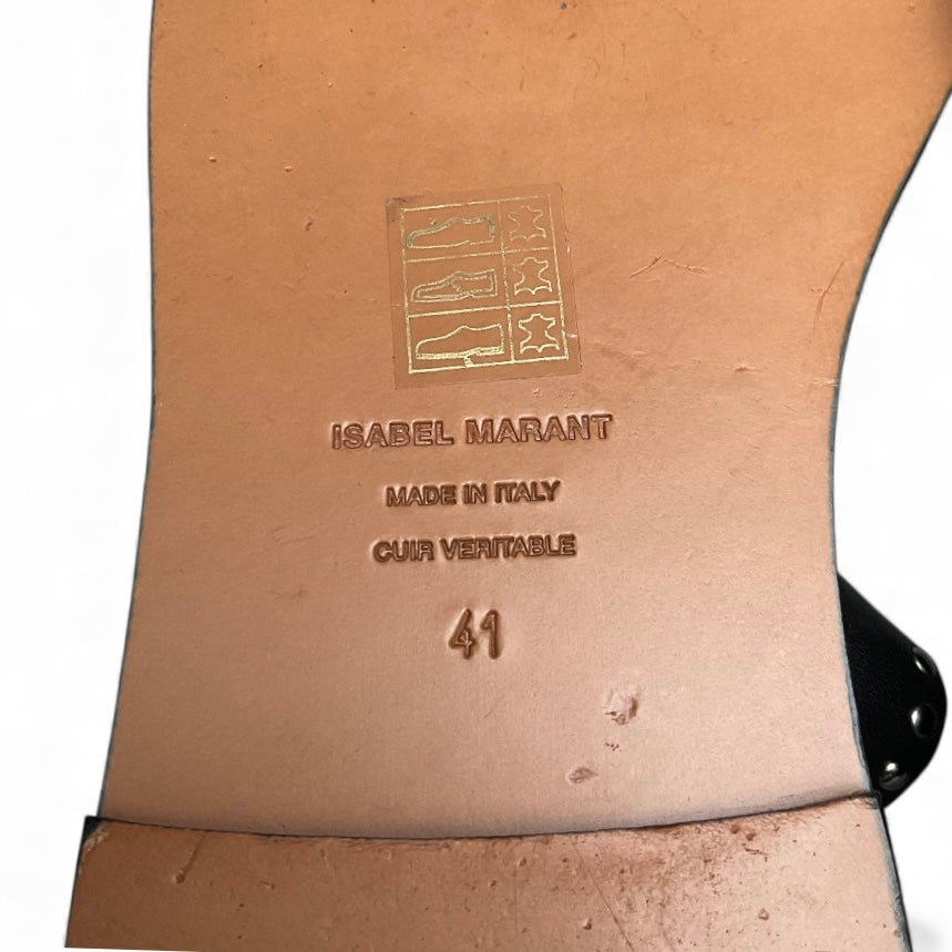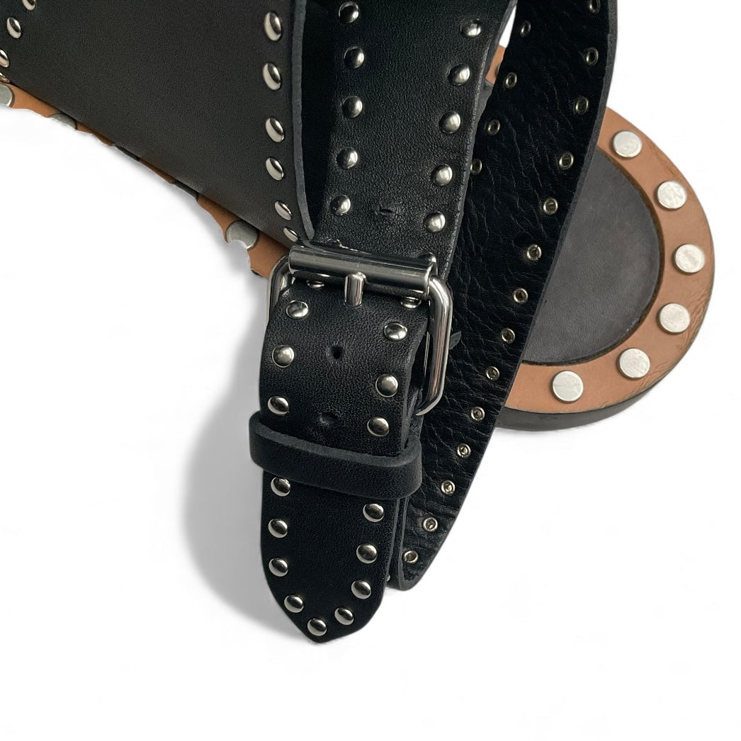 Isabel Marant offers up a very chic French interpretation of a classic Roman sandal. This pair is made from supple black leather and has dainty silver studs